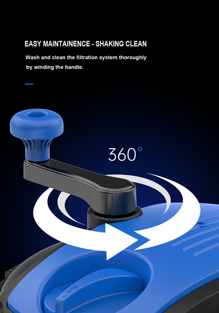 • Auto-clean design - hand squeeze cleaning structure.Queeze out the dirtfrom the sponges by squeezing andback flush to clean-out the dirt. Easy maintain.