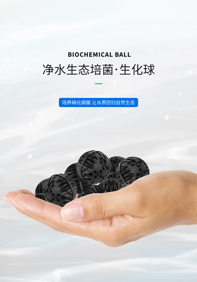 • 內置多種生化過濾材料,有效降解水中的硝酸鹽、磷酸鹽,分解水中多余養分,保證水體清澈。